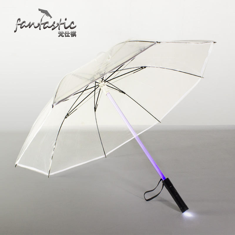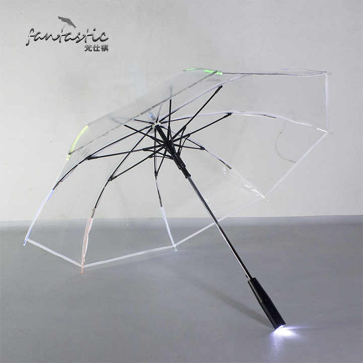 Wholesale LED Light up Transparent Umbrella, Glowing Party Prop Rain Gear, Clear POE Parasol for Festival Event