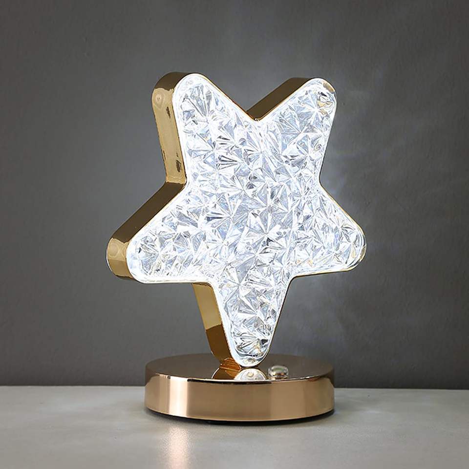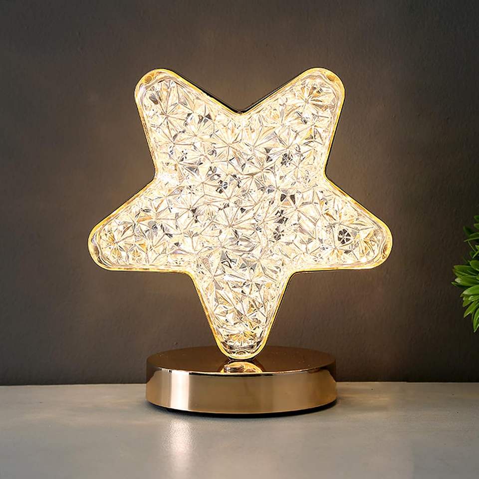 Lampe de table LED en cristal étoilé, veilleuse romantique pour chambre à coucher, mode batterie, idéale pour la décoration de chevet - Vente en gros