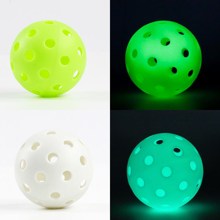 Vente en gros LED Pickleball lumineux coloré lueur dans le noir OEM/ODM Logo imprimé vert blanc jaune blanc 74mm X40 Pickle Balls