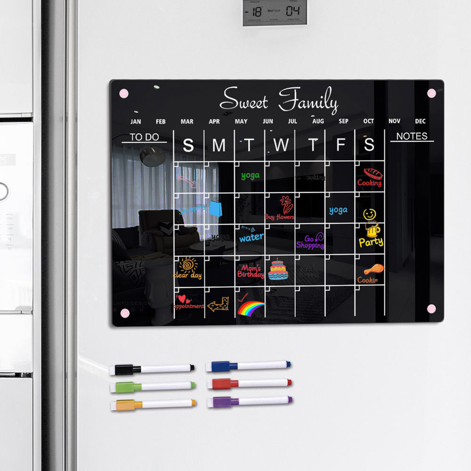 Tableau Calendrier Magnétique Réutilisable A3/A4 pour Réfrigérateur, Planificateur Hebdomadaire Transparent Effaçable à Sec en Acrylique Soluble dans l'Eau – Vente en Gros