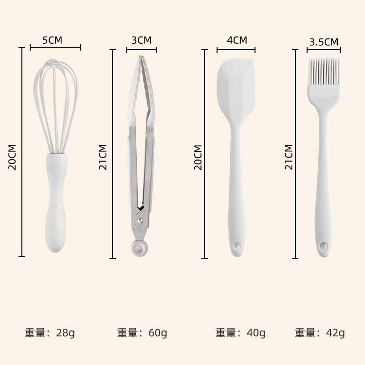 Lot de 4 ustensiles de cuisine Novax LM en silicone de qualité alimentaire : spatule, pinceau à huile, fouet et pince à pâtisserie pour la cuisson