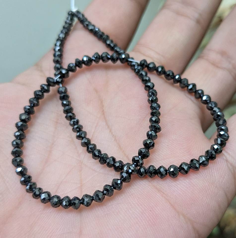 Perles rondes en diamant noir naturel AAA 100% naturelles 3,2–4 mm | Chaîne de diamants facettés de 16 pouces | Fournisseur de bijoux en gros