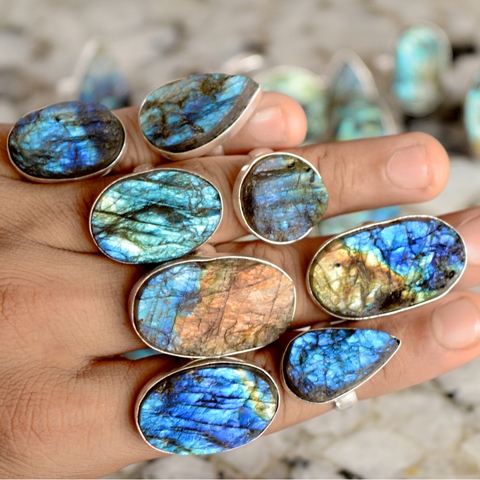 Bague Unisexe en Pierre Précieuse Naturelle Labradorite Druzy Faite à la Main Plaqué Or/Argent, Vente en Gros