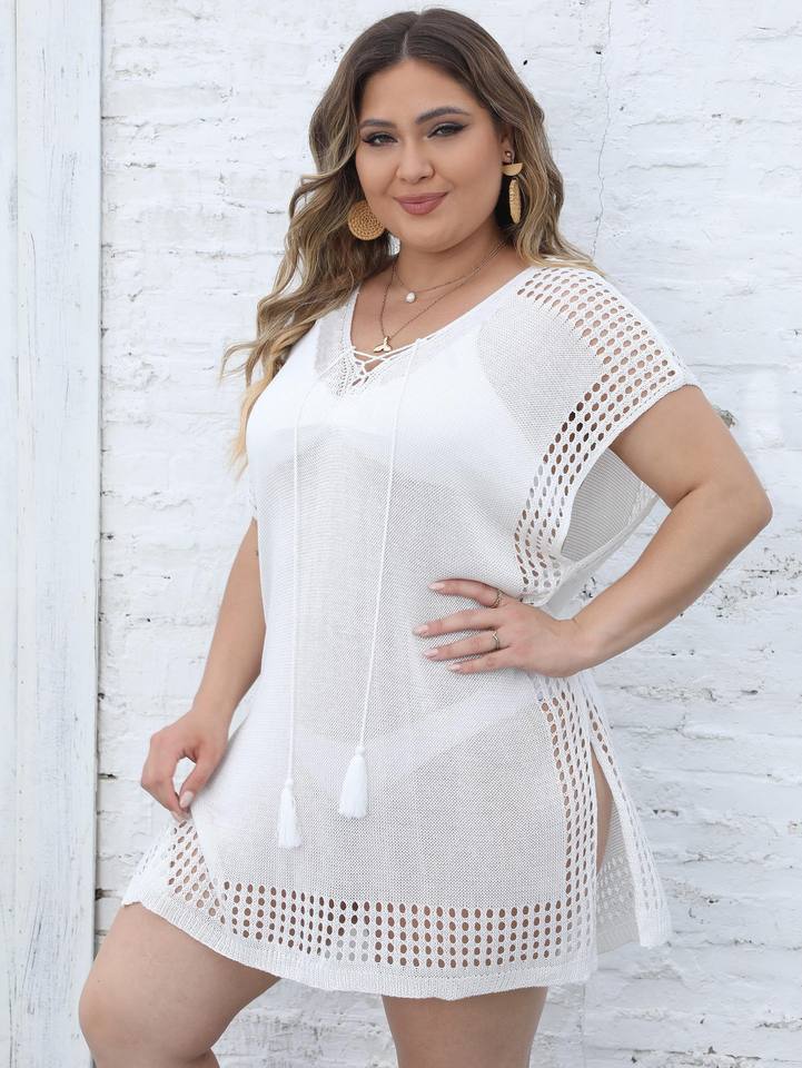 Robe de plage grande taille pour femmes, col en V profond, à nouer devant, tissée, sexy, pour les vacances, vêtement de plage pour bikini, pour commande en gros