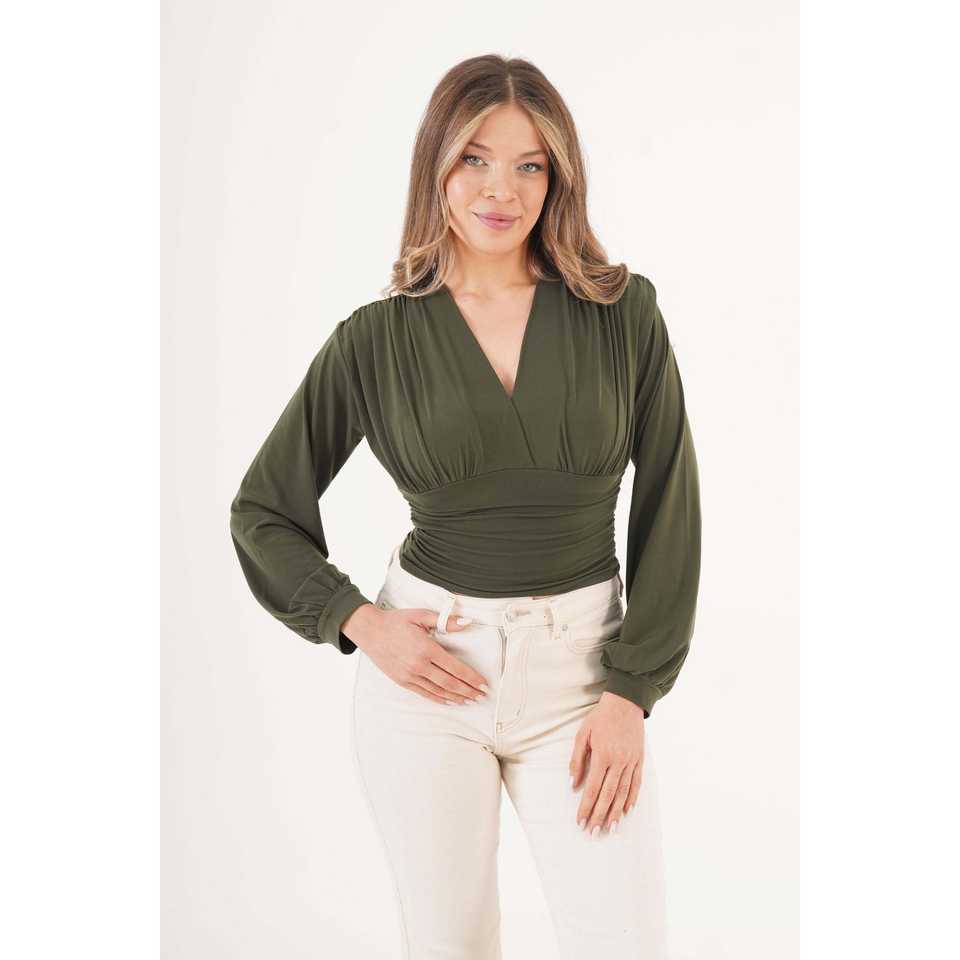 Wholesale Ladies Satin Silk Blouse with Embroidered Logo V-Neck Bust Draped Available in XL Size for Office Wear-Vintage Style