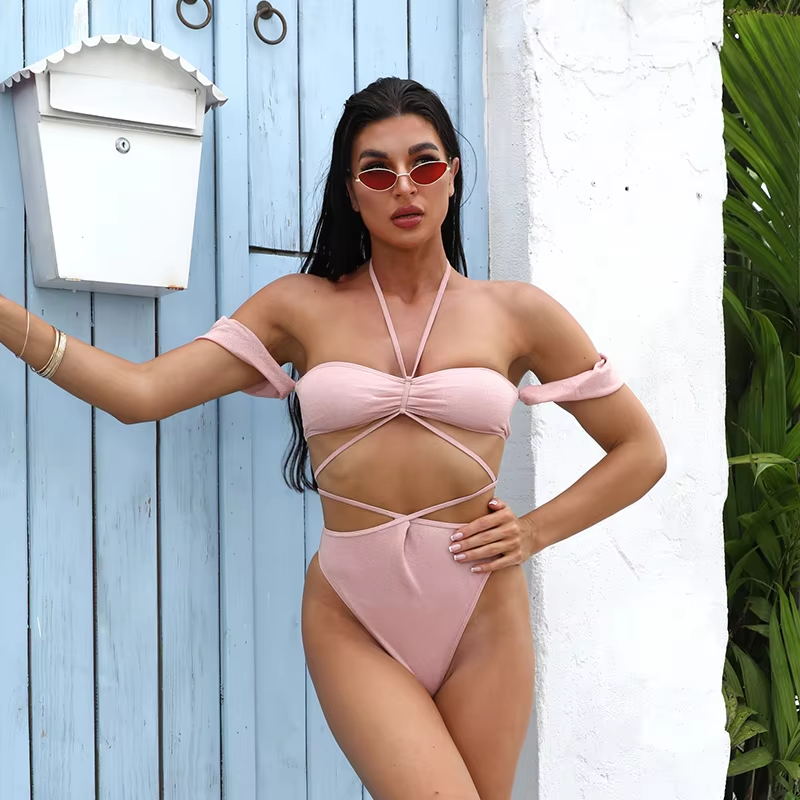 Wholesale Lady Beachwear Bikini Custom Swimwear With logo Bodysuit Beachwear Cutout Bathing Suit One Piece Swimsuit