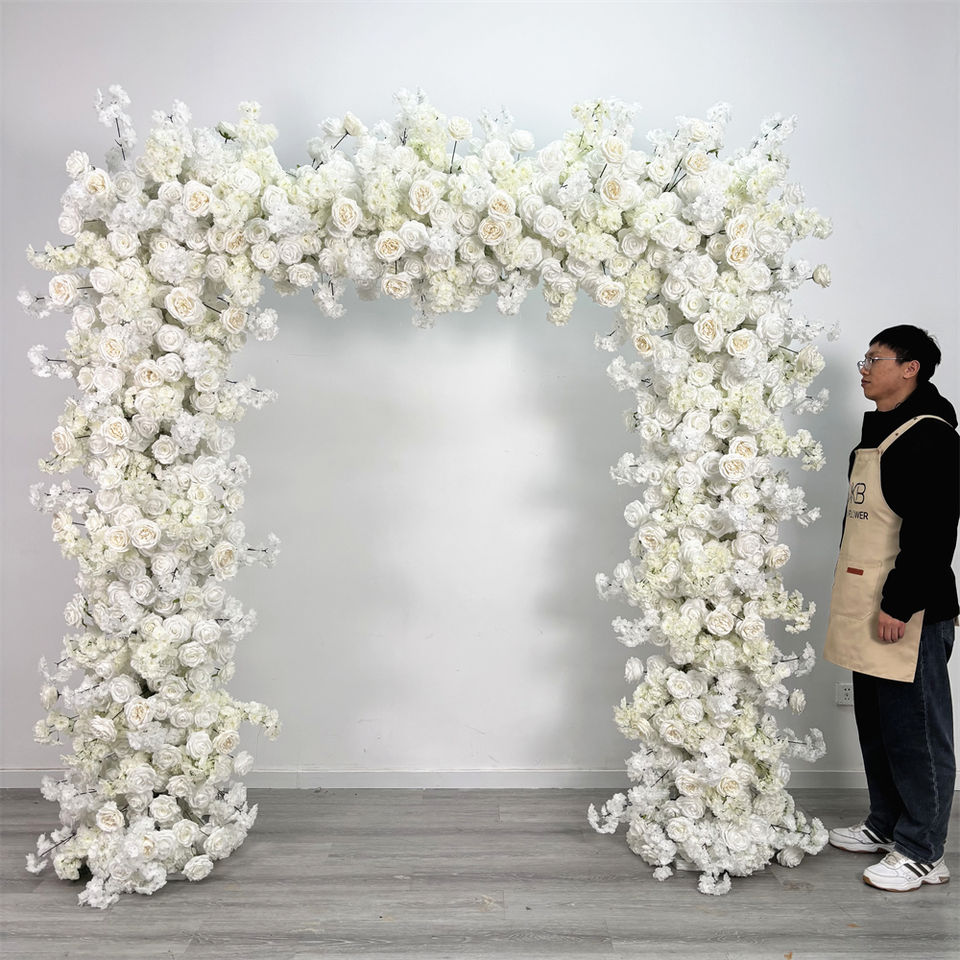 Arche florale artificielle en soie carrée, grande, entièrement blanche, réaliste, pour décoration de fond de mariage, accessoire de scène