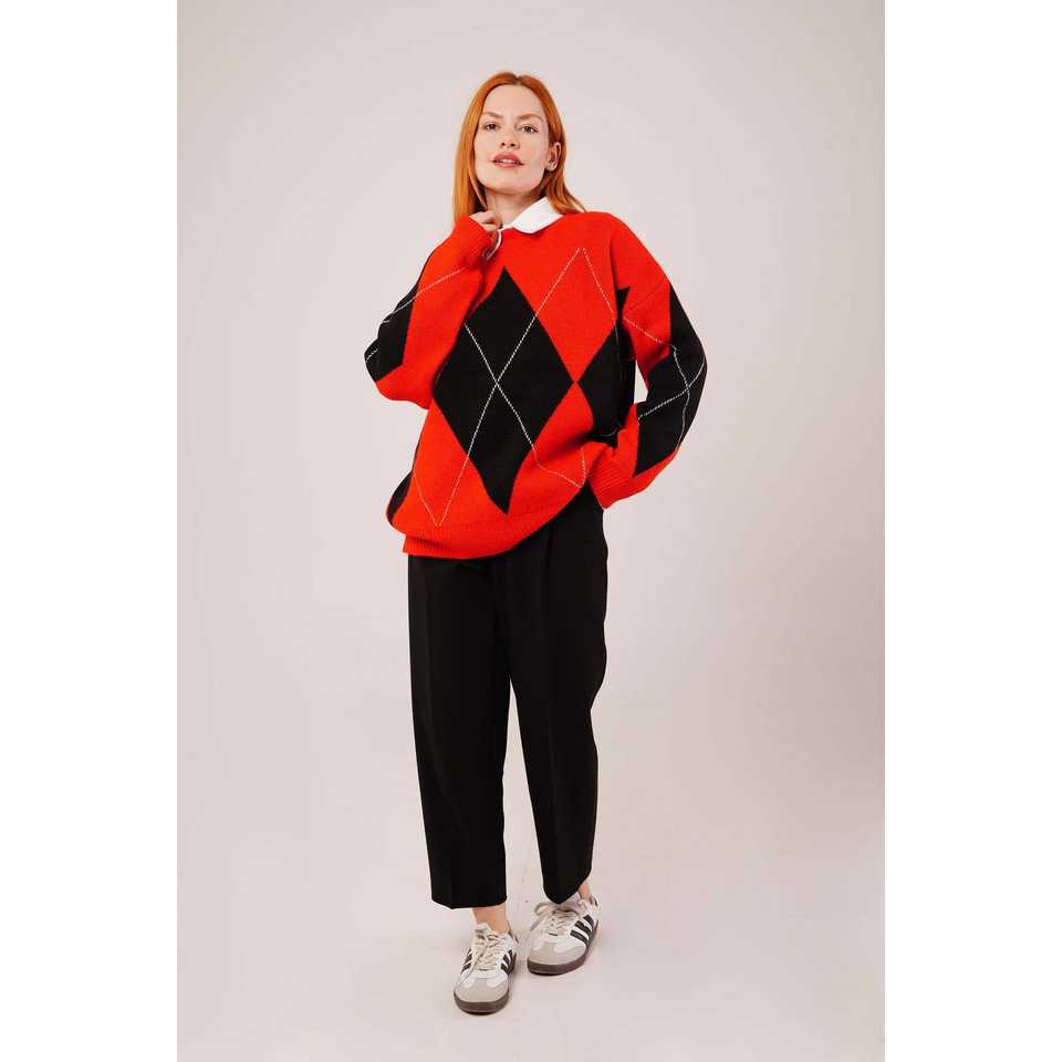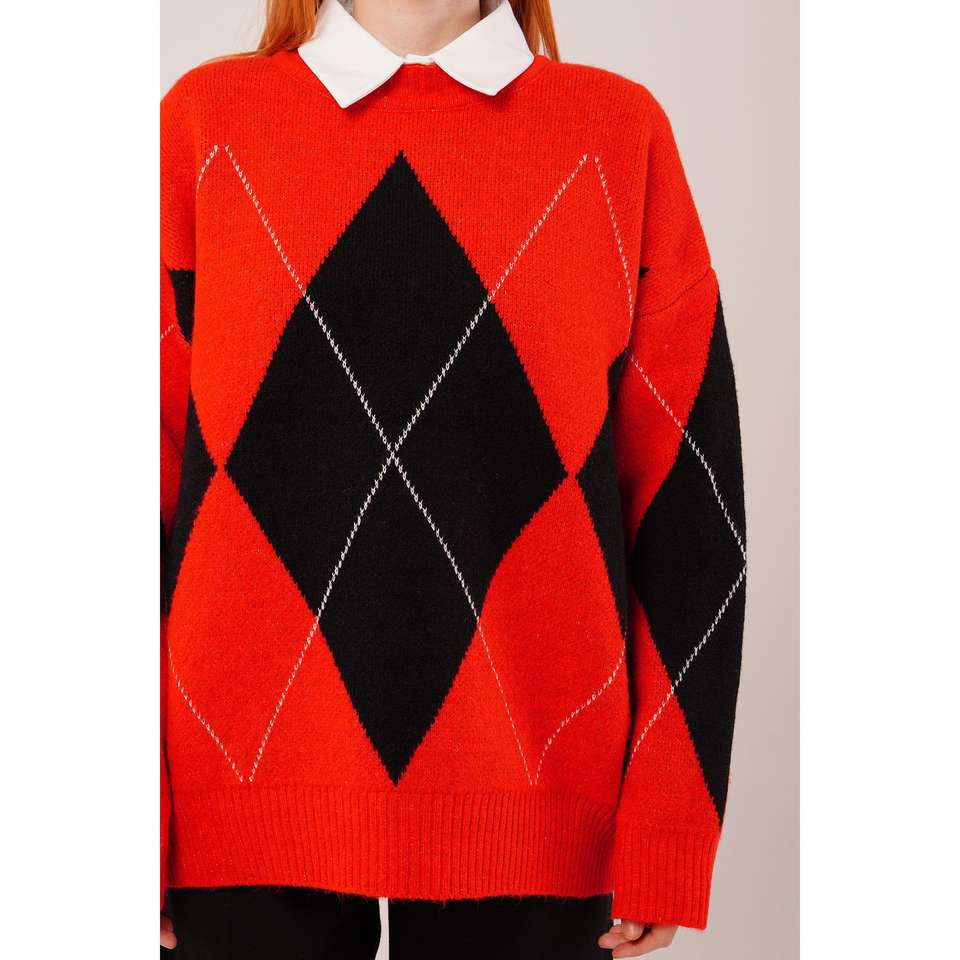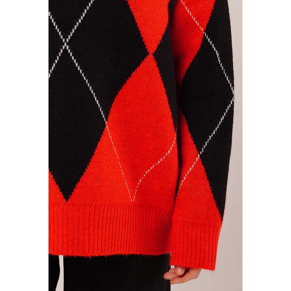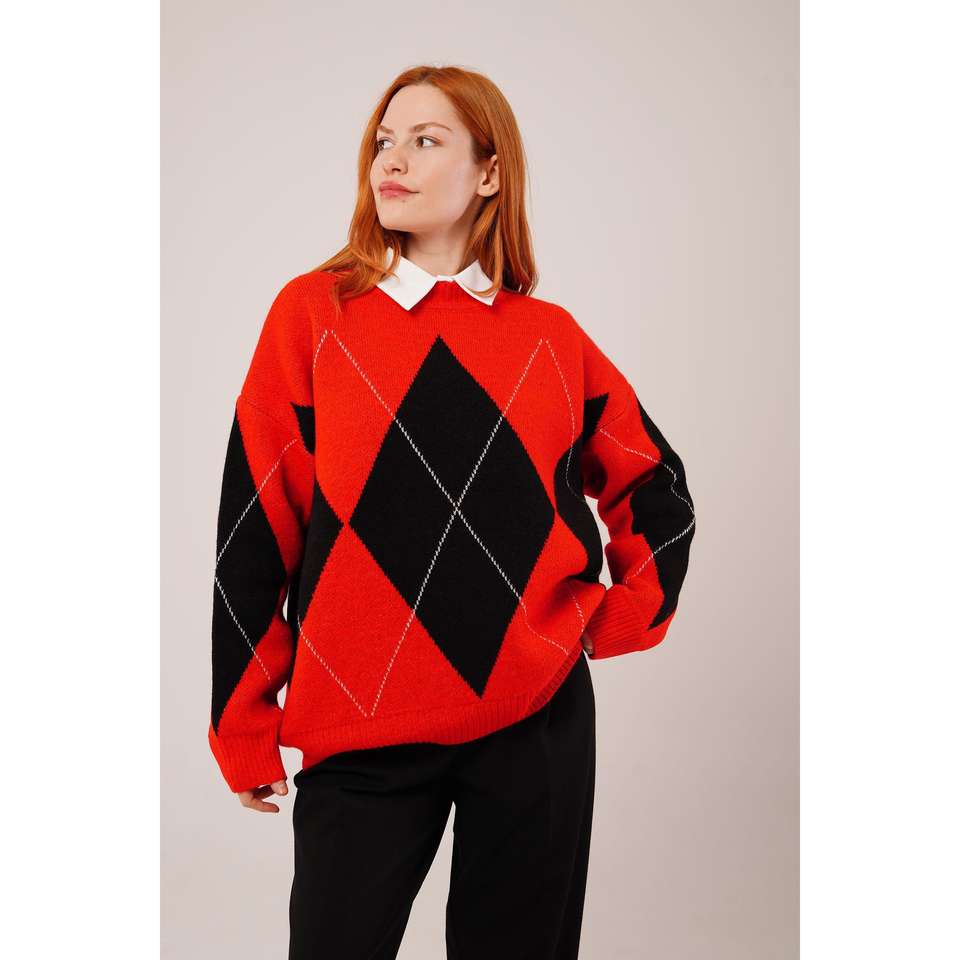 Pull tricoté rouge style preppy à motif baklava, vente en gros