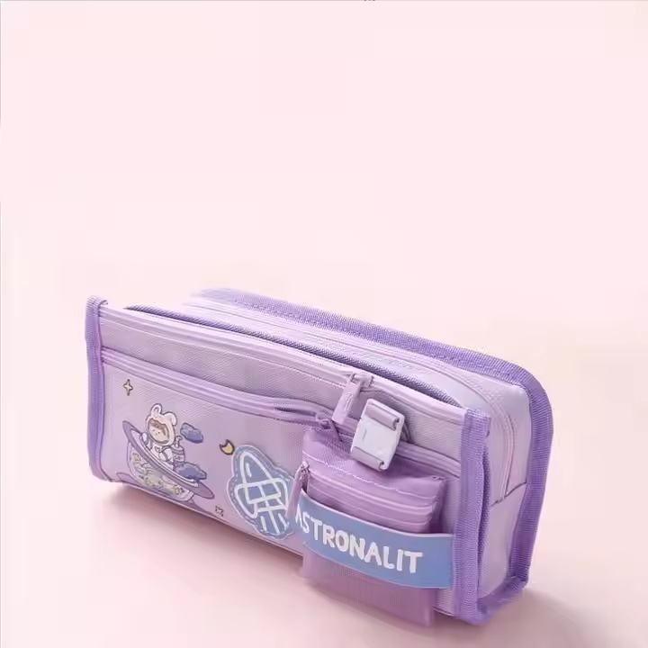 Sac à crayons brodé mignon de grande capacité à fermeture éclair sac de rangement de papeterie pour filles à motif de dessin animé vente en gros