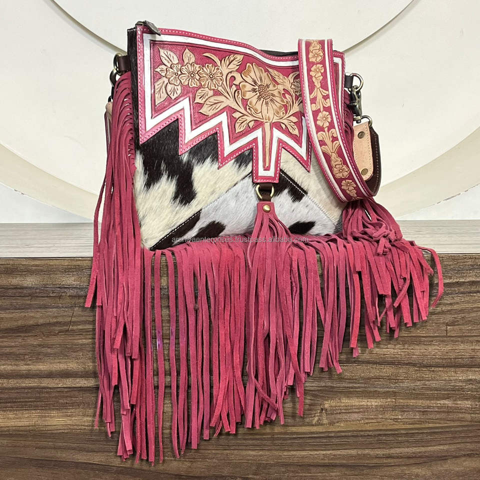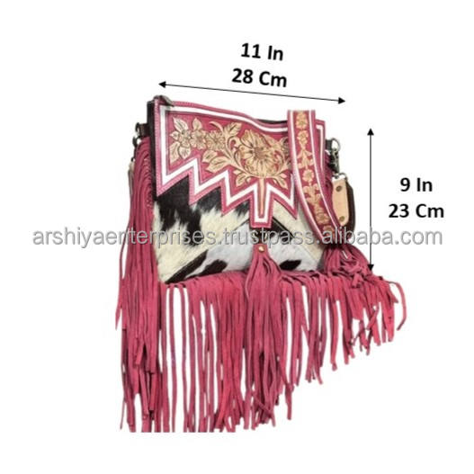 Product name:Hand Tooled Cowhide Leather Tassel Crossbody Bag