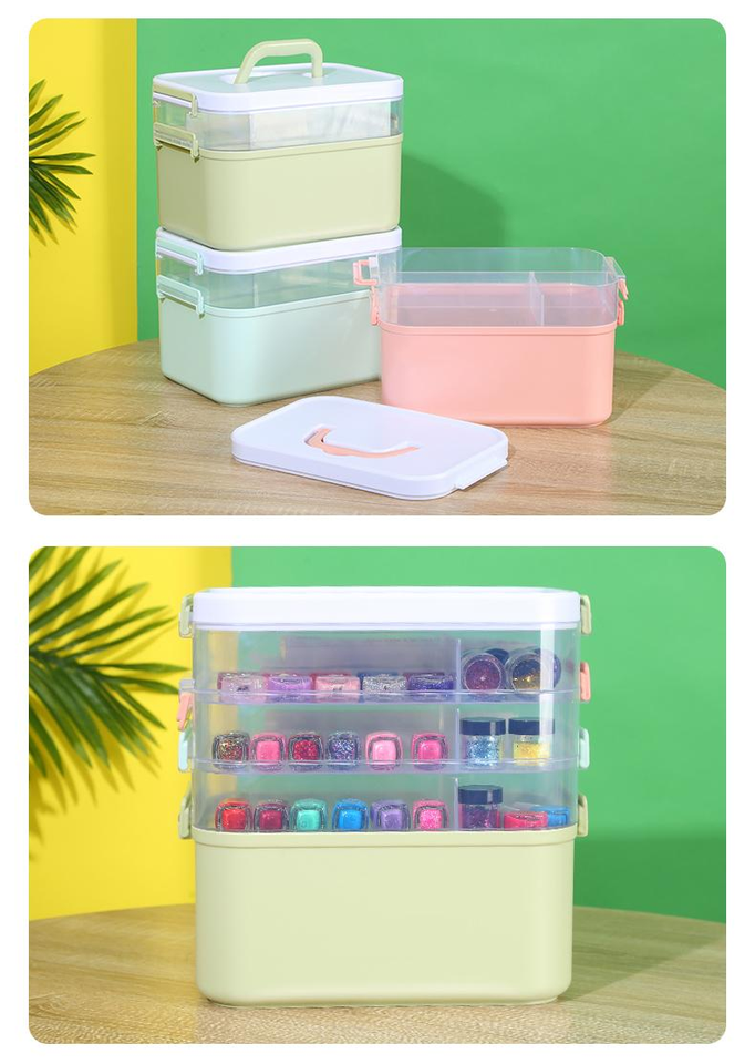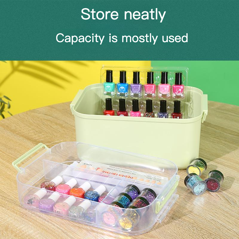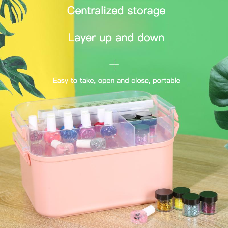 Vente en gros grande boîte de rangement en plastique double couche kit de soin des ongles stockage d'outils vernis à ongles colle gros kit de soin des ongles stockage