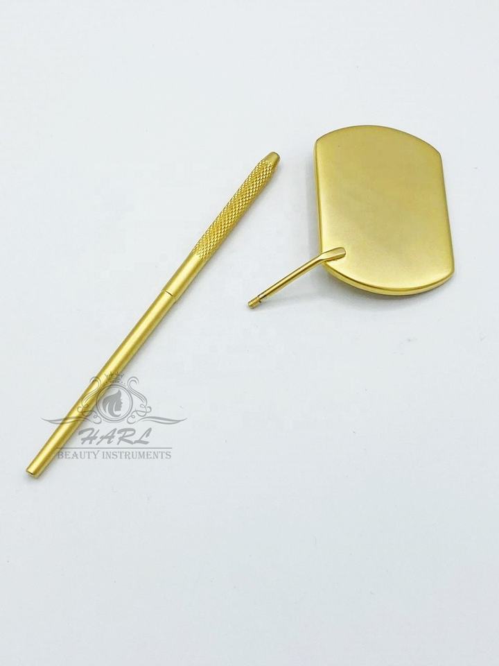 Gros grands miroirs d'extension de cils carrés en or marque privée en acier inoxydable sourcils vérification pince à épiler beauté