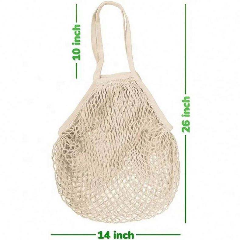 Sac fourre-tout en filet de coton biologique réutilisable avec logo personnalisé pour supermarché, idéal pour les achats en gros
