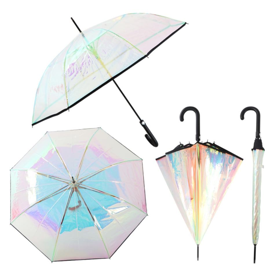 Laser Color-Changing J Handle Iridescent Rainbow Umbrella For Rain