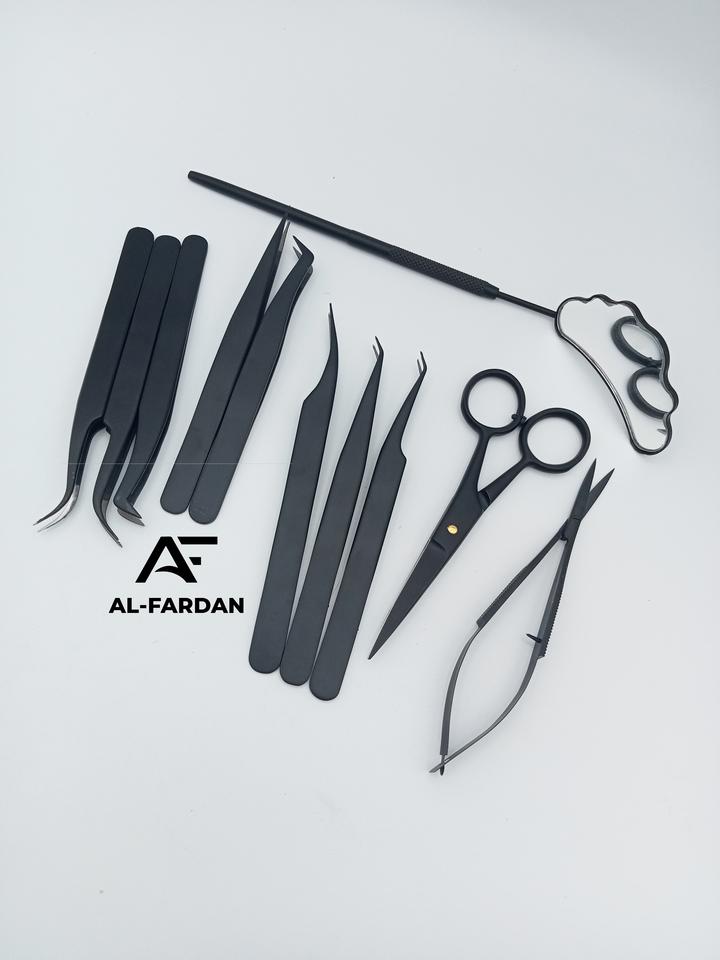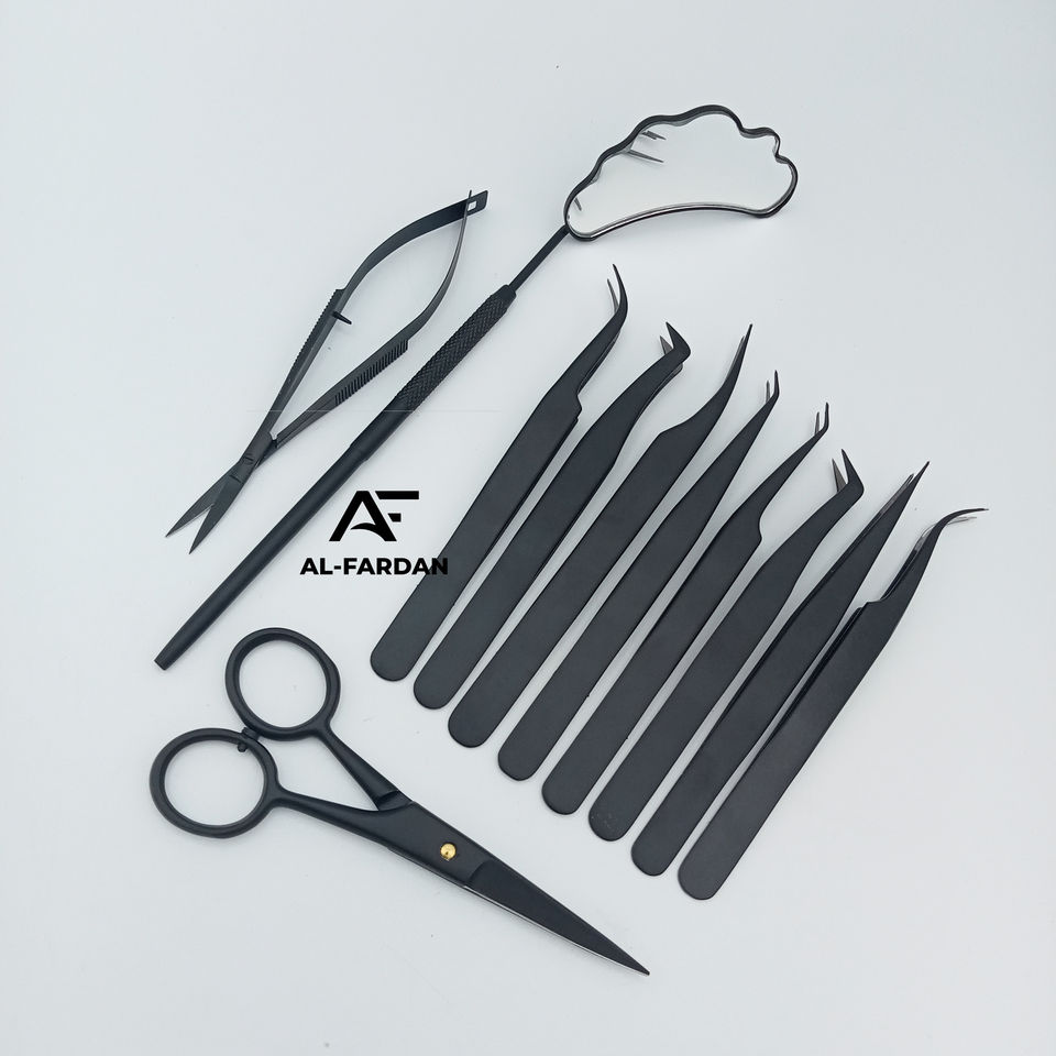 Pince à cils en gros ensemble complet de pinces à épiler d'extension de cils de couleur noire mate produits de haute qualité avec ciseaux à cuticules des sourcils