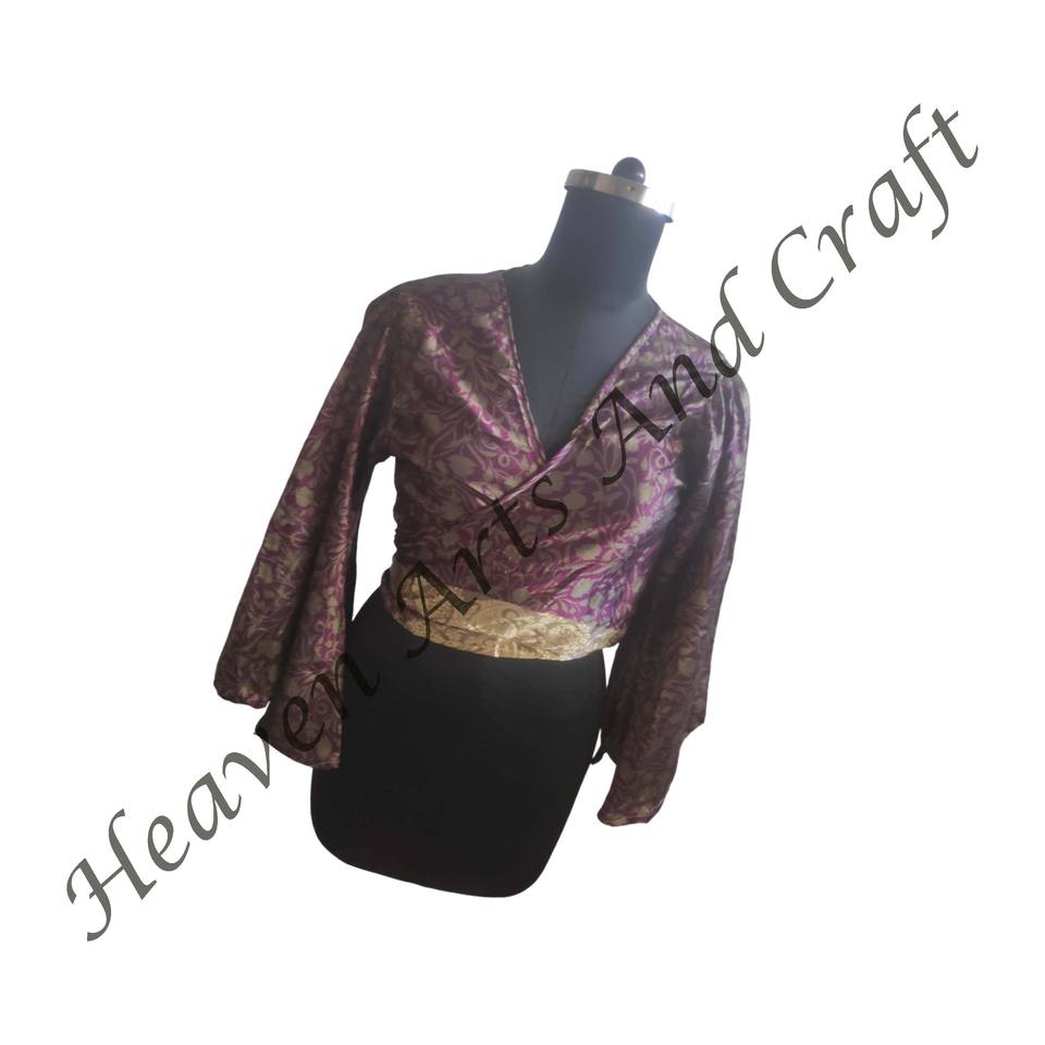 Numéro de Type:Recycle Sari Silk Tie Tops Bell Sleeves