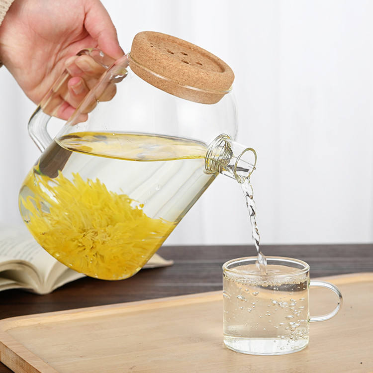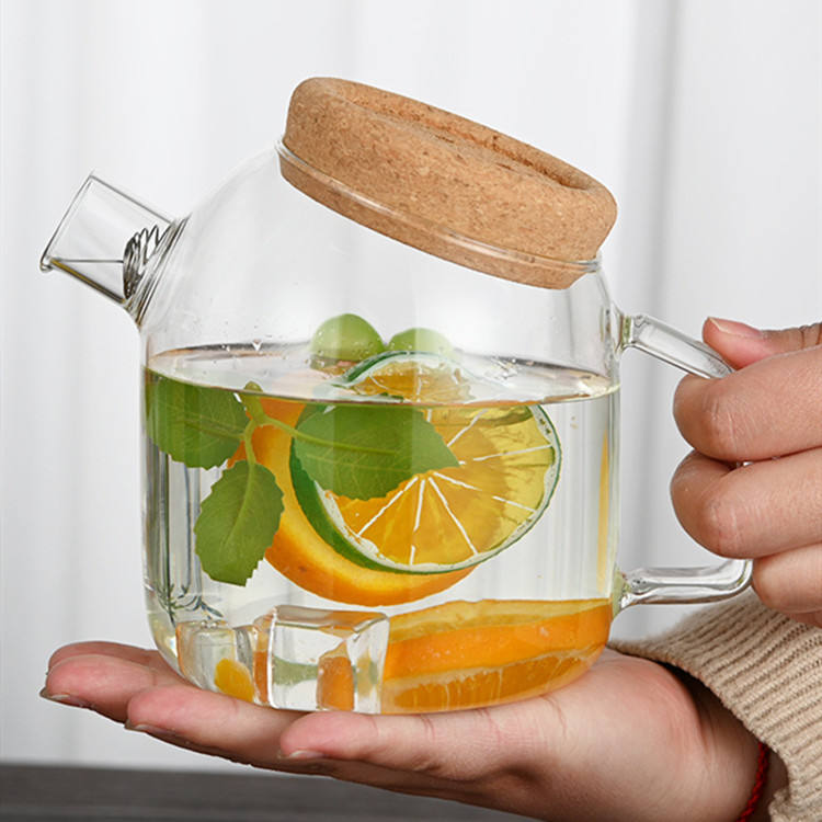 Nom du produit:Pichet en verre à thé et fruits avec couvercle et filtre en liège