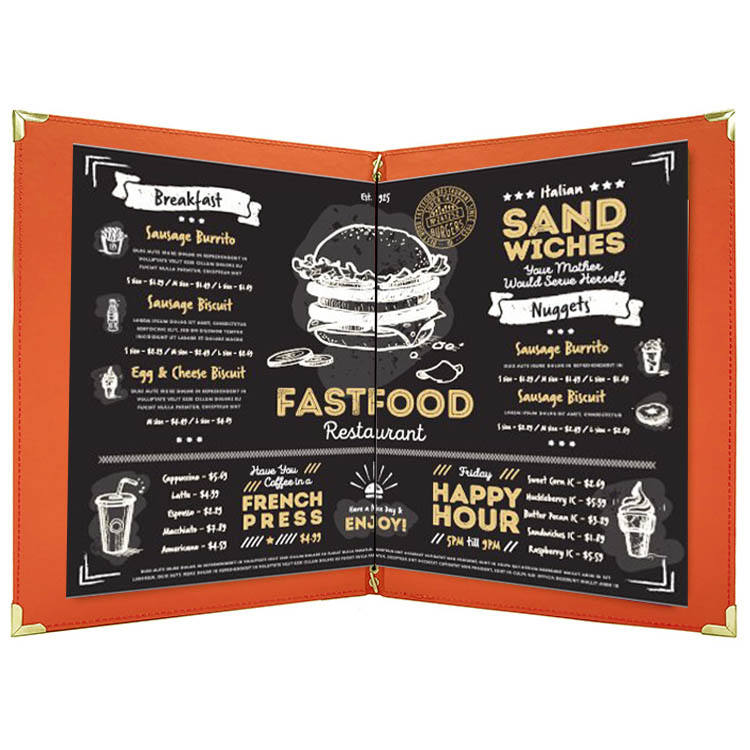 Keywords:book cover style menu cover for restaurant bars