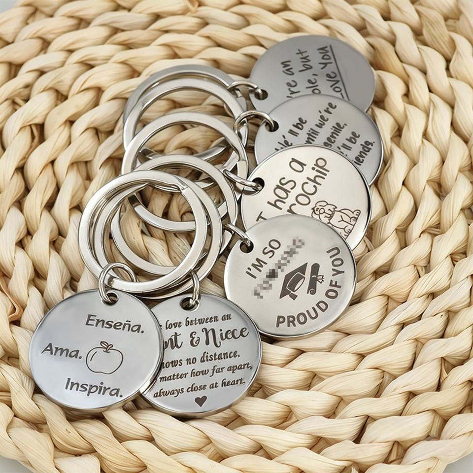 Porte-clés personnalisé en métal vierge pour la vente en gros, avec logo de sécurité, code QR, design unique et tendance, accessoires DIY