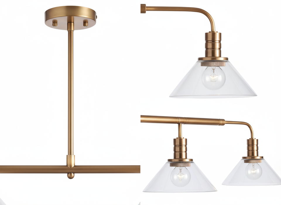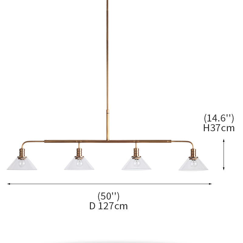 Vente en gros lustre linéaire de transition du milieu du siècle finition laiton abat-jour conique en verre transparent pour îlot de cuisine certifié UL/CE