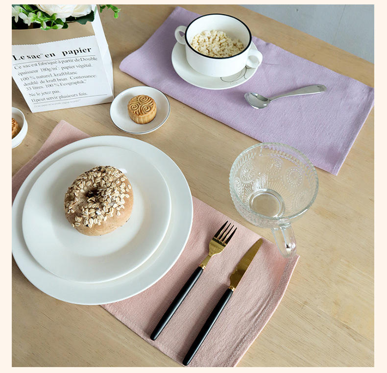Serviette de cuisine en lin et coton de couleur unie, douce et absorbante, carrée, pour mariage occidental, serviette décorative