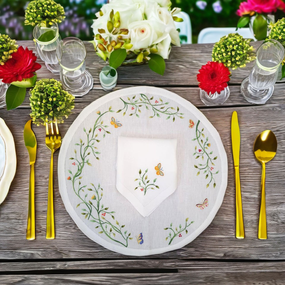 Vente en gros de napperons ronds en lin personnalisés brodés pour mariages maison vacances style traditionnel lavable