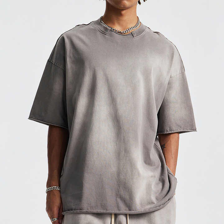 T-shirt unisexe en coton 100% délavé à l'acide, motif logo en gros, style hip-hop, surdimensionné, vintage