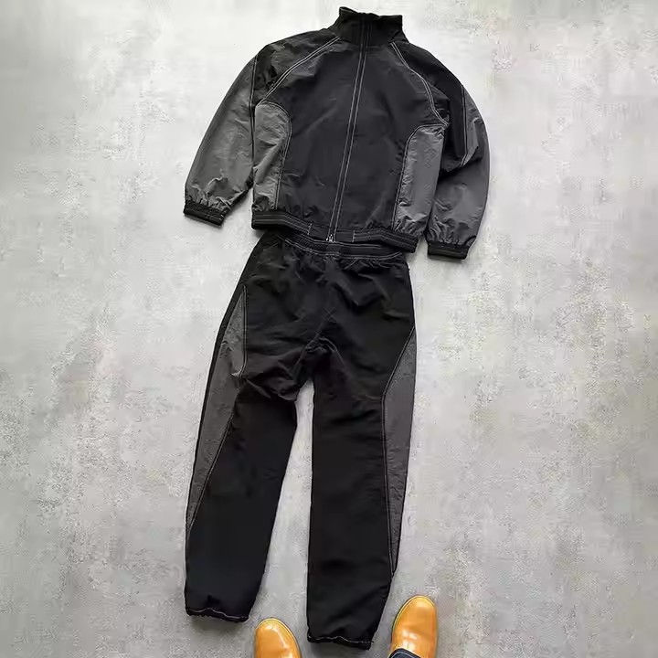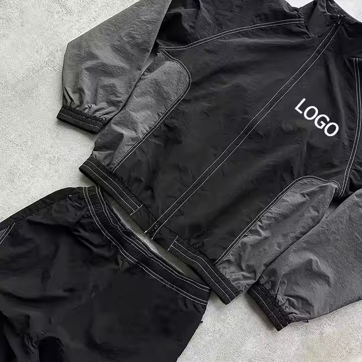 Ensemble de jogging réfléchissant surdimensionné en polyester et nylon avec logo en gros, veste coupe-vent zippée, survêtement pour hommes