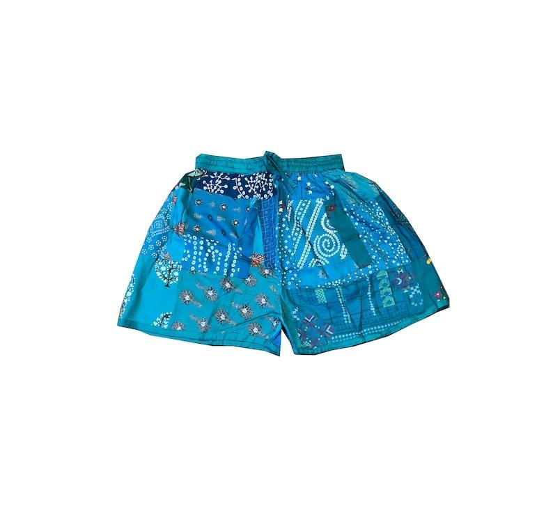 Short Patchwork de Bohème de Couleur Assortie Pantalon Cargo Hippie Boho à Taille Élastique Confortable pour l'Été