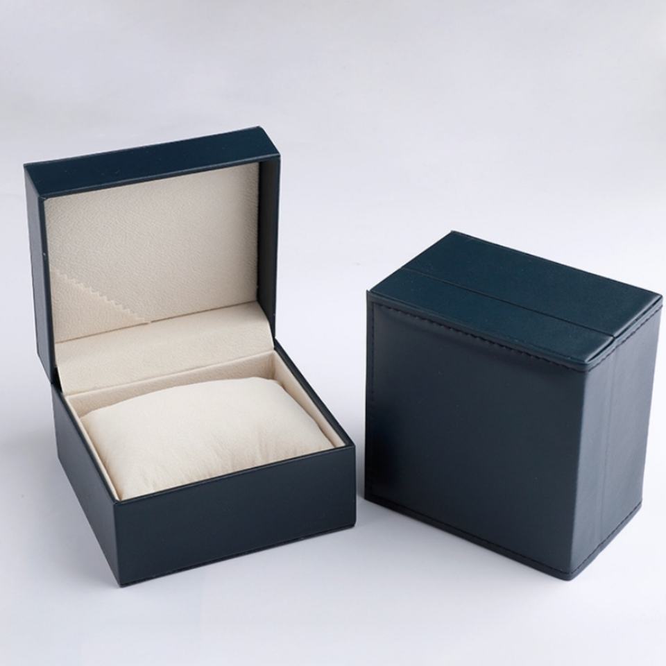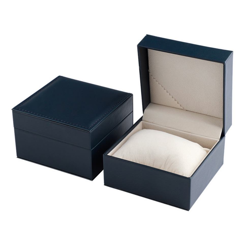 Wholesale Low MOQ Custom Logo Leatherette Dustproof Square Watch Collecting Case High-end Blue Watch Box Gift Jewelry Packaging