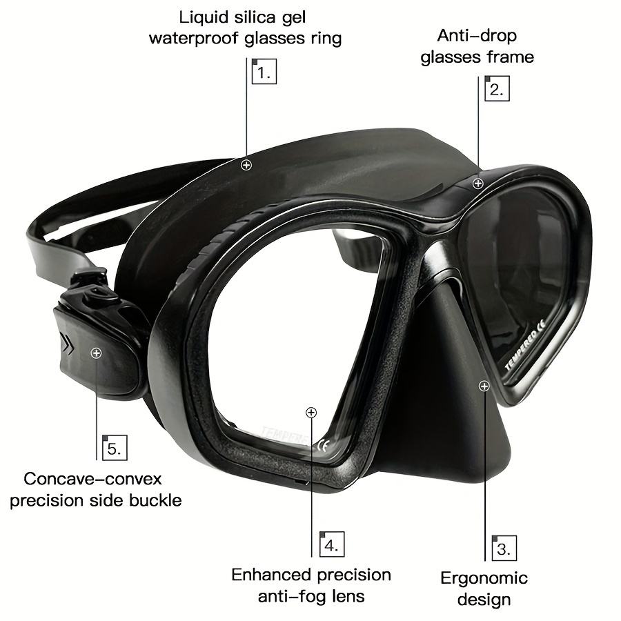 Masque de Plongée en Apnée à Faible Volume en Verre Trempé, Étanche et Anti-Buée avec Vision Claire, Vendu en Gros avec Étui