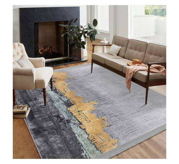 Tapis de luxe abstrait à motifs, lavable en machine, grande surface, style nordique, bleu et or, tapis de sol intérieur, taille personnalisée