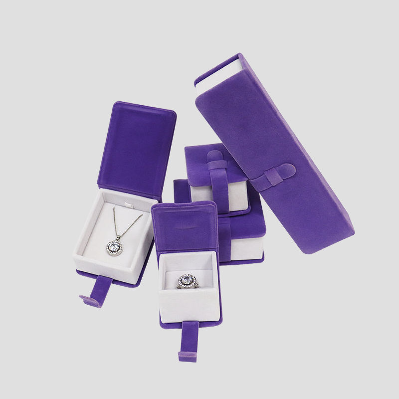Boîte à bijoux carrée en velours en forme de livre de luxe en gros Emballage en carton écologique violet Premium Bracelet Collier Bague