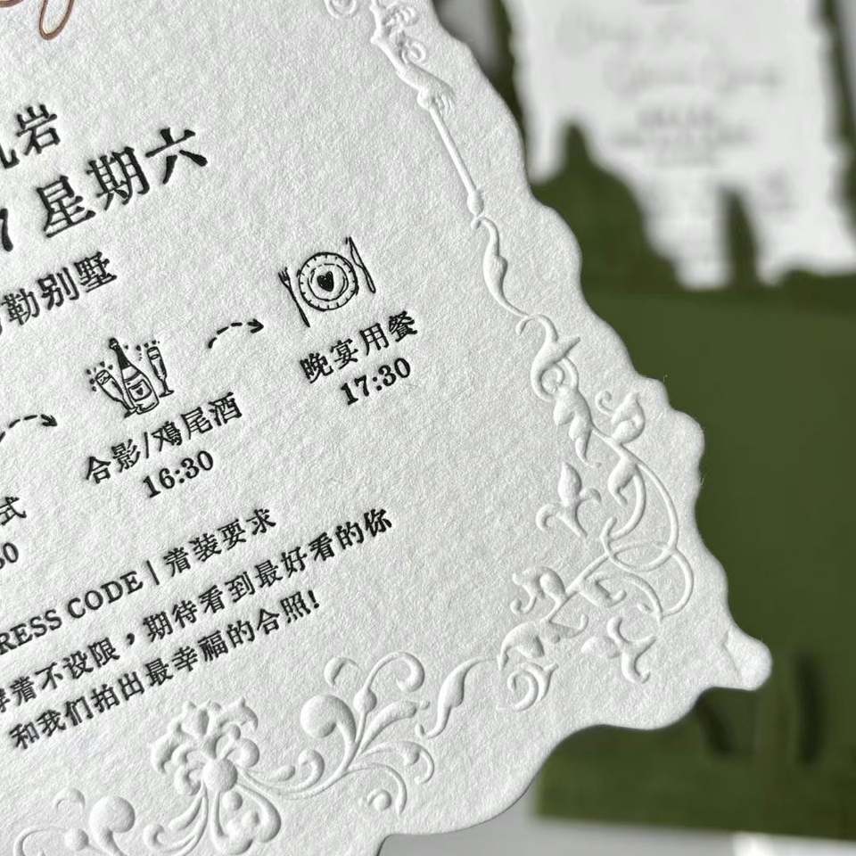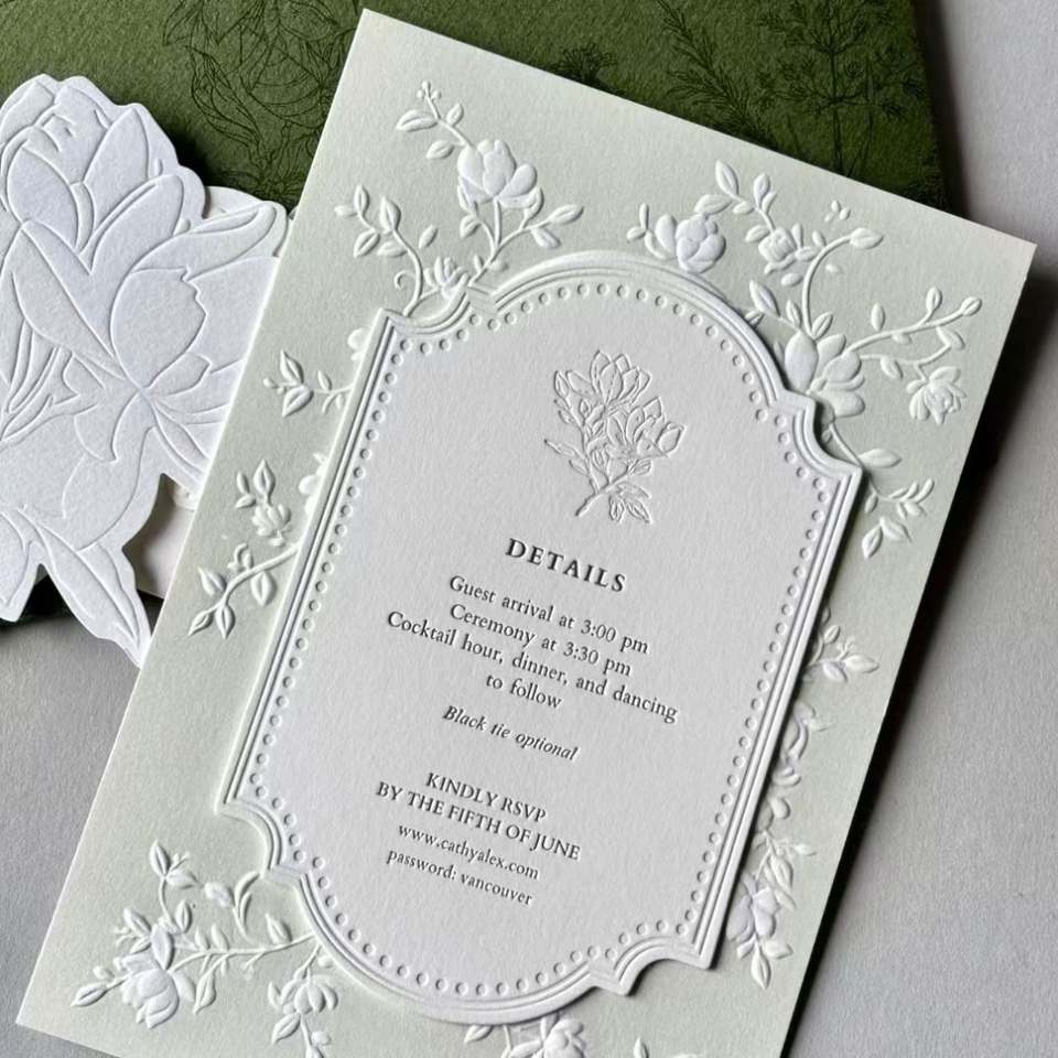 Invitations de mariage de luxe personnalisées en gros, papier artistique gaufré, livraison rapide, en vrac