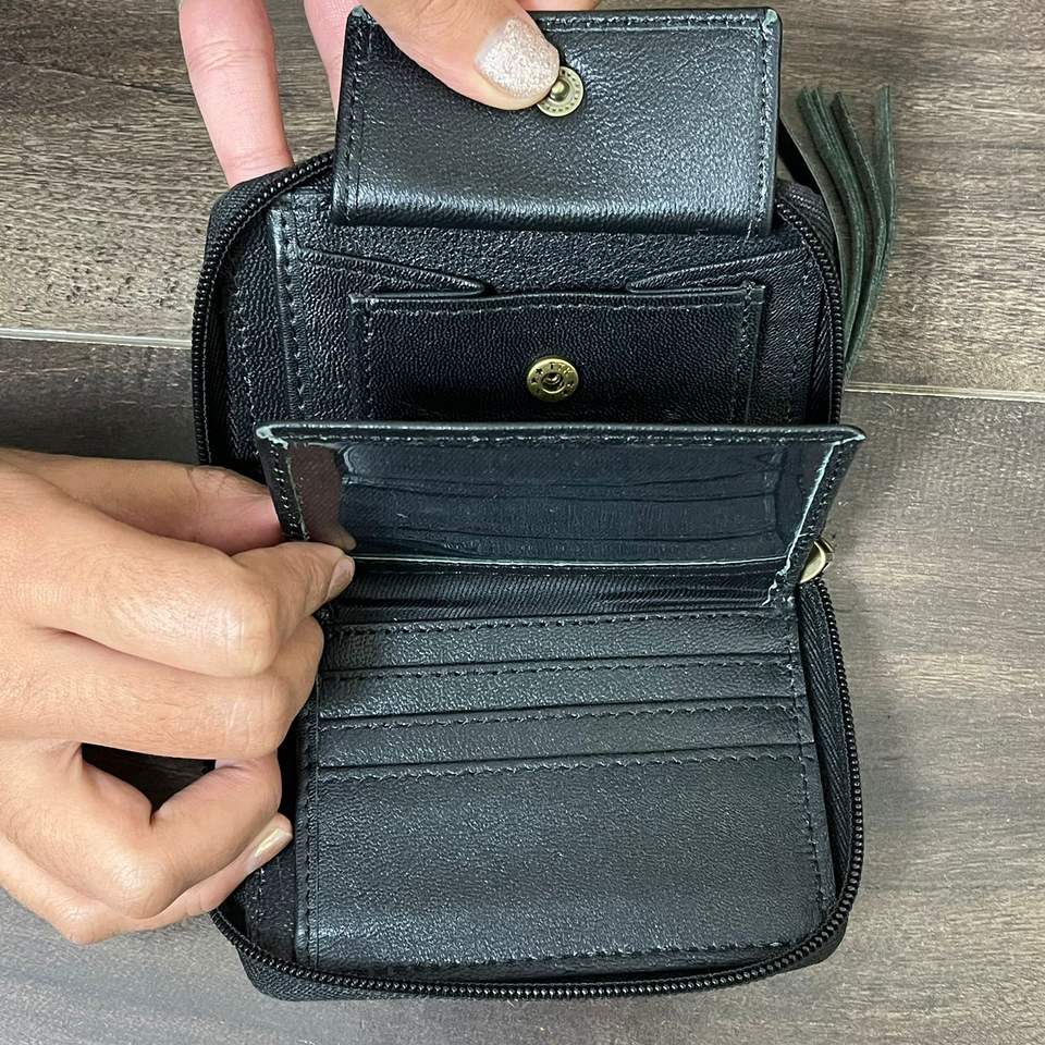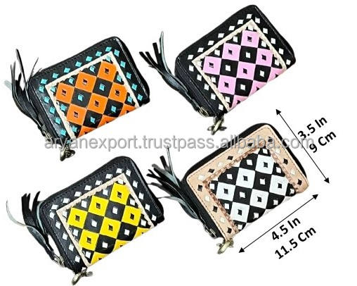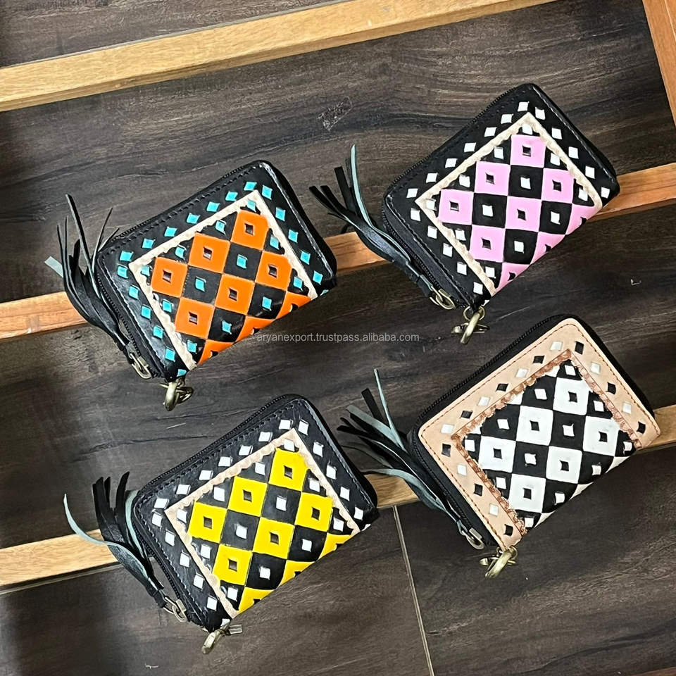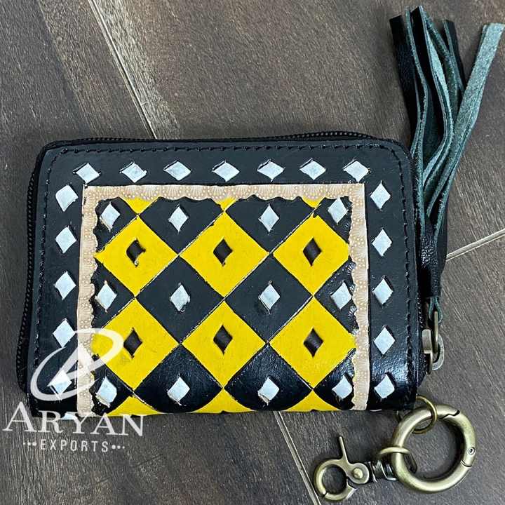 Product name:Hand Tooled Checkered Leather Mini Coin Purse