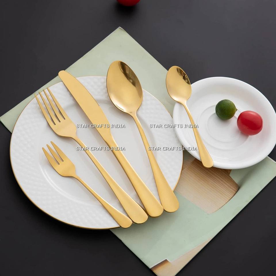 Wholesale Luxury Custom Stainless Steel Flatware Wedding Restaurant Plated Gold 24 PCS Cutlery Set Customization Available