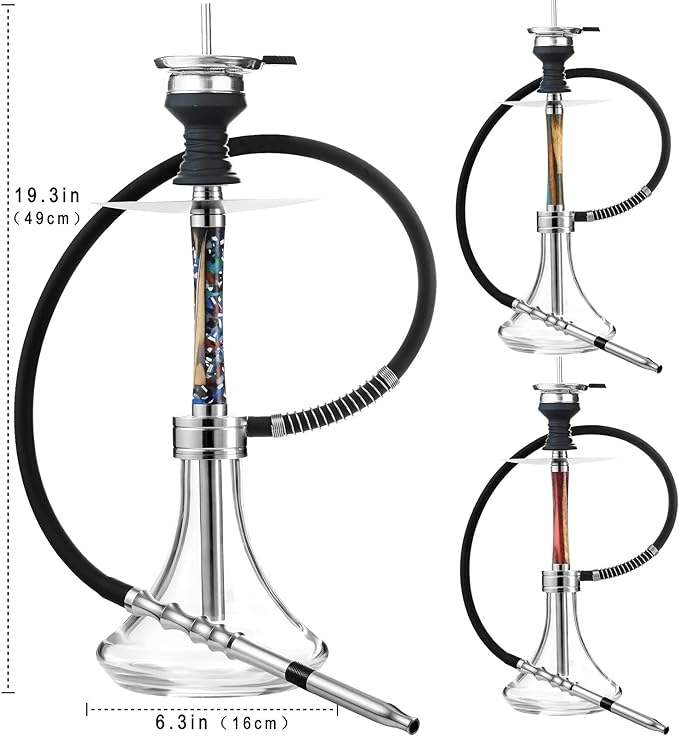 Ensemble complet de chicha en acier inoxydable 304 personnalisé de luxe en gros, pièces CNC, verre givré, tête de chicha souple avec boîte cadeau