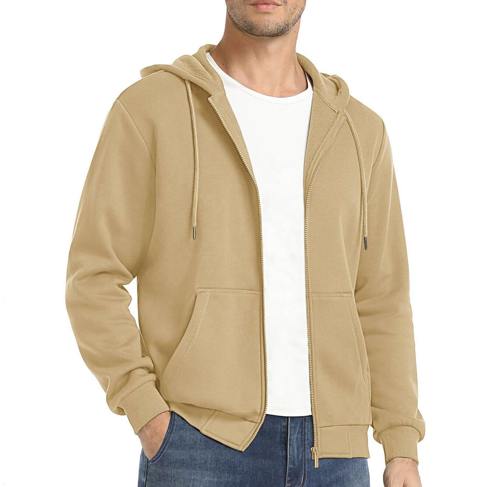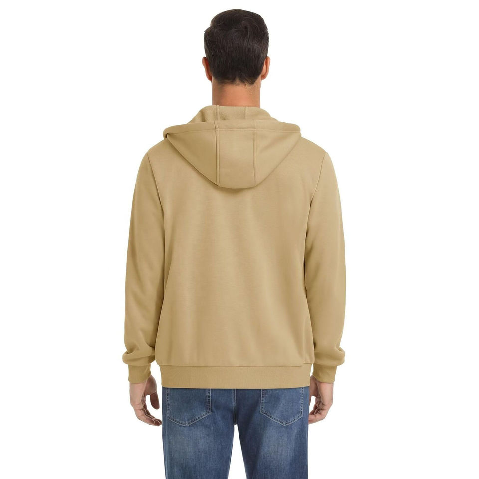 Wholesale Luxury Fleece Men's Hoodie Heavyweight Cotton with Custom Zipper Oversized Puff-Print Solid Pattern Winter Warmth