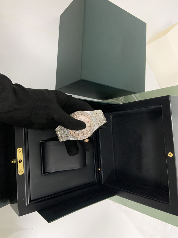 Vente en gros de montres de plongée d'affaires à quartz de luxe, diamants naturels, boîtier en bronze, cuir/céramique, lentille en cristal de saphir, 20m d'eau
