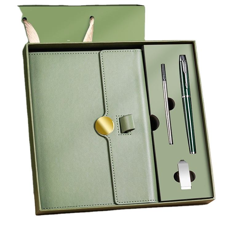 Ensemble cadeau de luxe en gros, échantillon personnalisé, premier agenda hebdomadaire dans une boîte, journal de prière avec stylo, carnet vert relié rigide A5