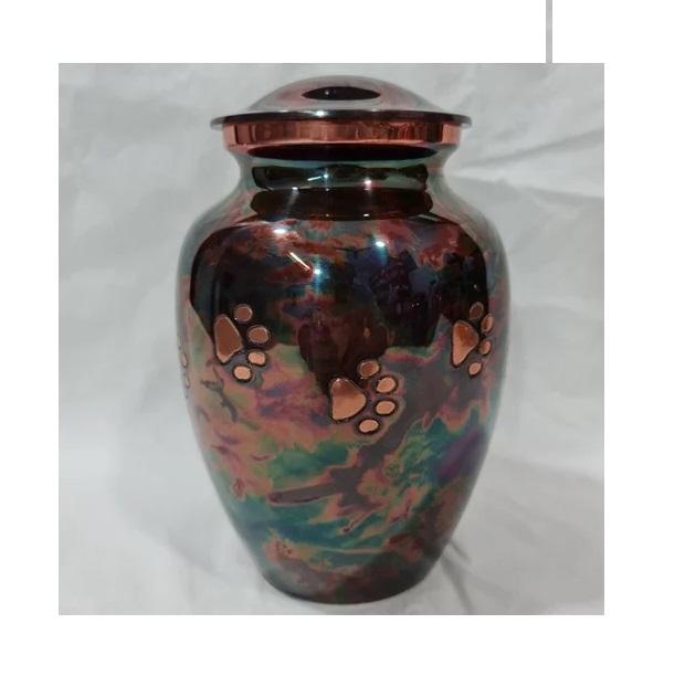 Wholesale Luxury Handmade Green Aluminum Pet Cremation Urn Paw Print Design Ashes Memorial for Dogs & Cats.