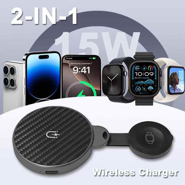 Chargeur sans fil multifonctionnel pliable de luxe en gros 2 en 1 pour iPhone 15 Pro Max 15W, format mini portable avec cordon P19