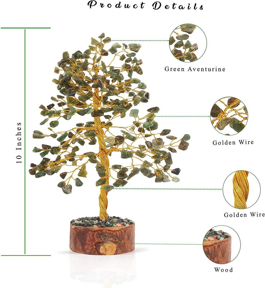 Product name:Green Aventurine Gemstone Tree With Golden Stem (300 Chips)