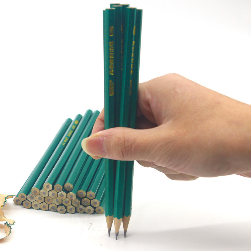 Vente en gros Macaron tige triangulaire bois de tilleul brillant avec pointe en caoutchouc croquis dessin stylo apprentissage papeterie HB crayon