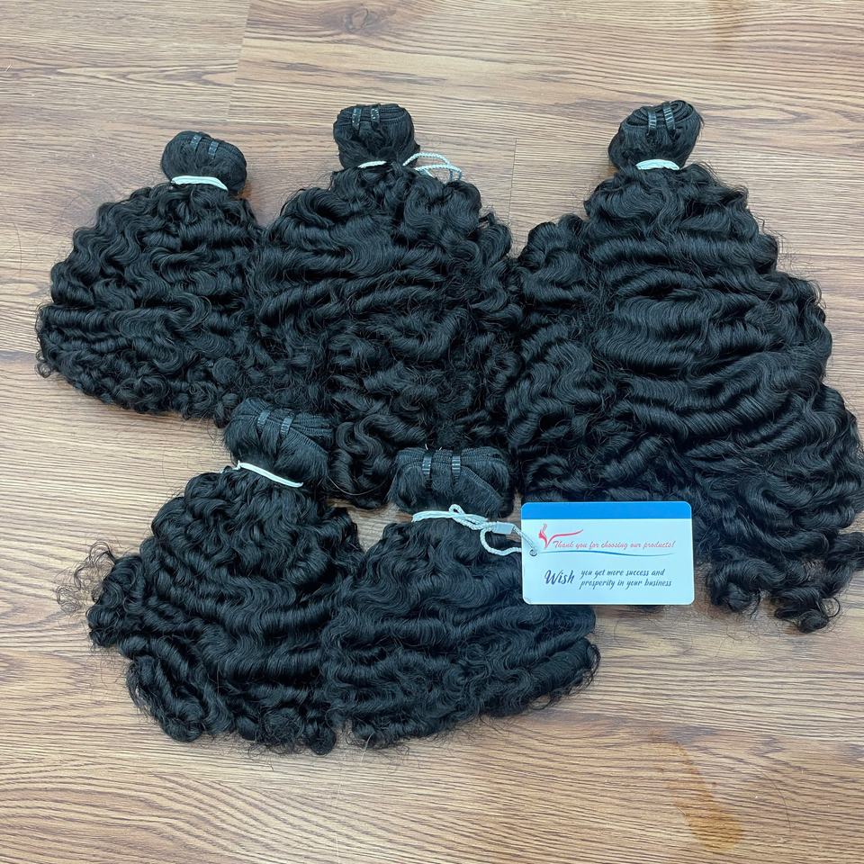 Vente en gros Machine Trame Petit Fuzz Bouclés Vietnamien Extensions de Cheveux Humains Doux Cheveux Bouclés Bundles de Cheveux Bouclés