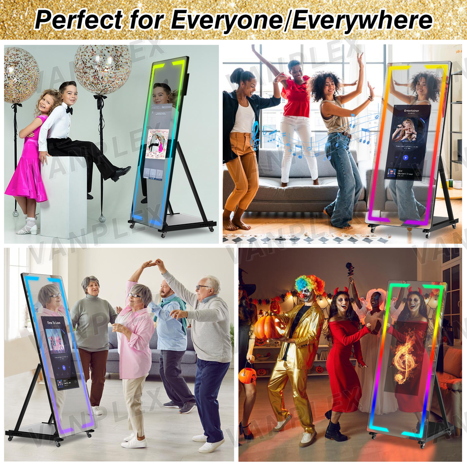 Miroir Magique Photo Booth 43'' en Gros pour Revendeurs - Cadre Métallique OEM, Flight Case, Garantie 2 Ans, Stock US
