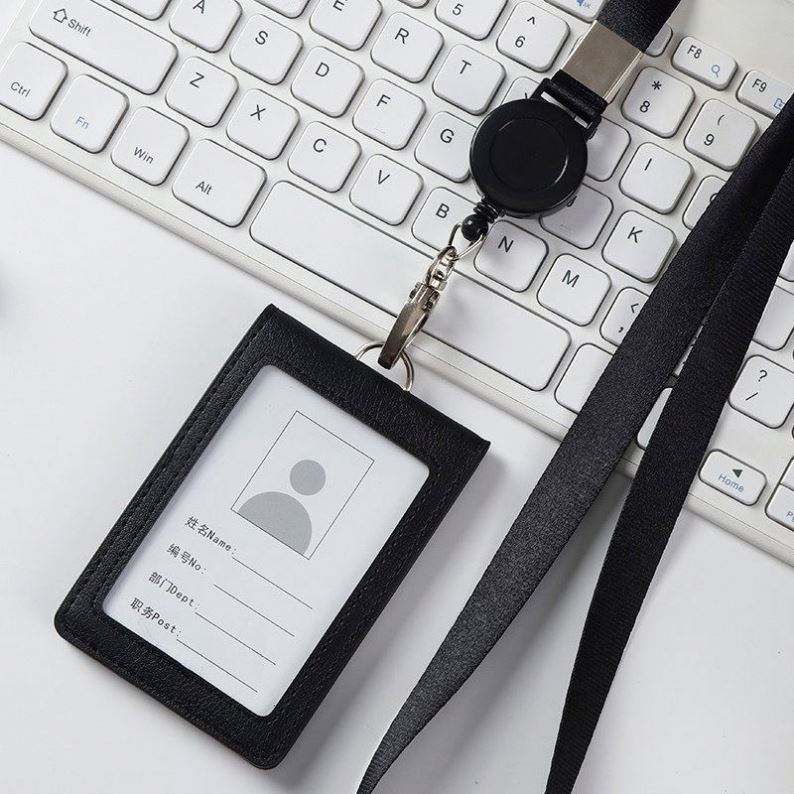 Porte-cartes d'identité en PU avec fermeture auto-agrippante, multi-emplacements pour badges d'employé, cartes de repas et clip de lanière – Vente en gros