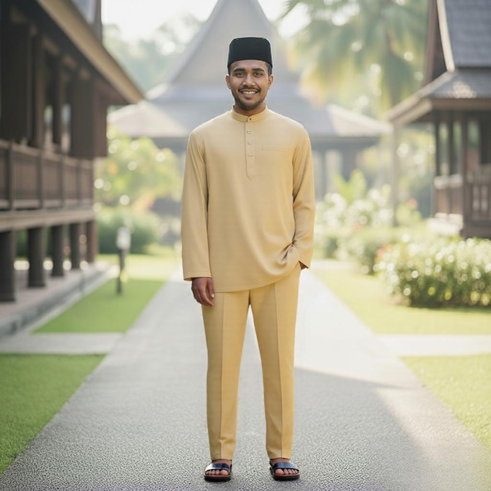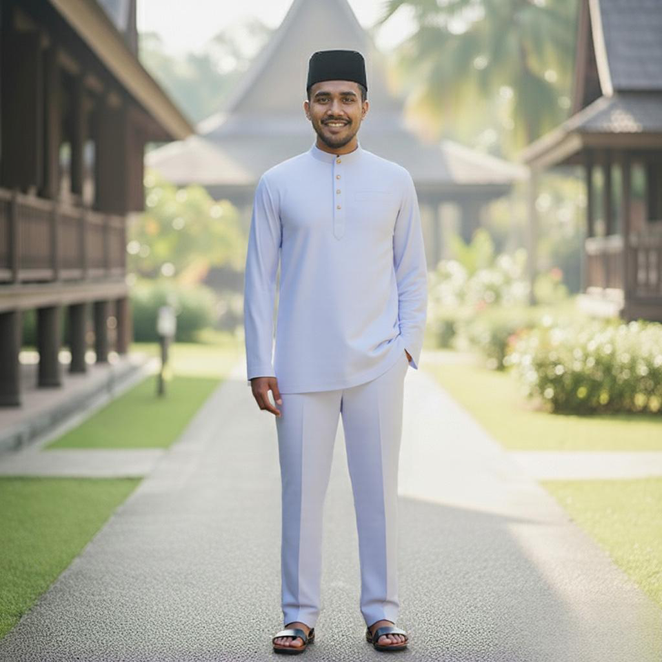 Wholesale China Fujian Supplier Johor Heritage Baju Melayu Teluk Belanga Ironless German Cotton S-5XL Casual Autumn Raya 2025