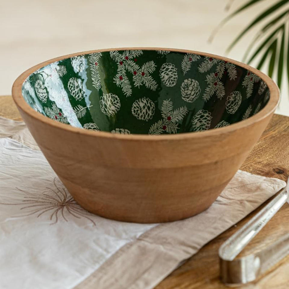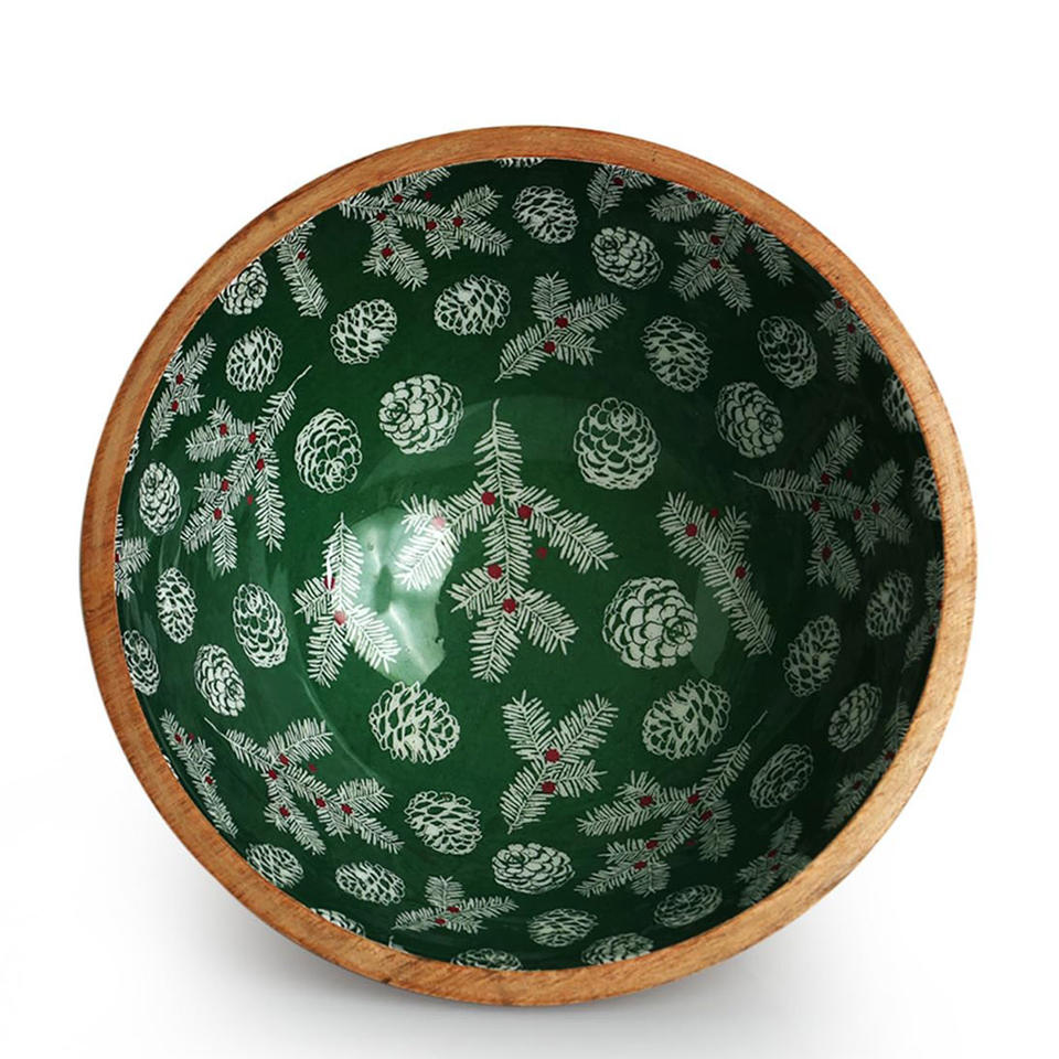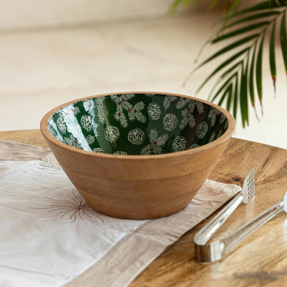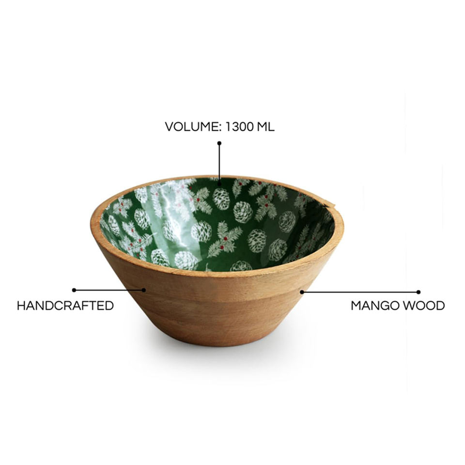 Product Name:Wooden Round Bowl with Enamel Print
