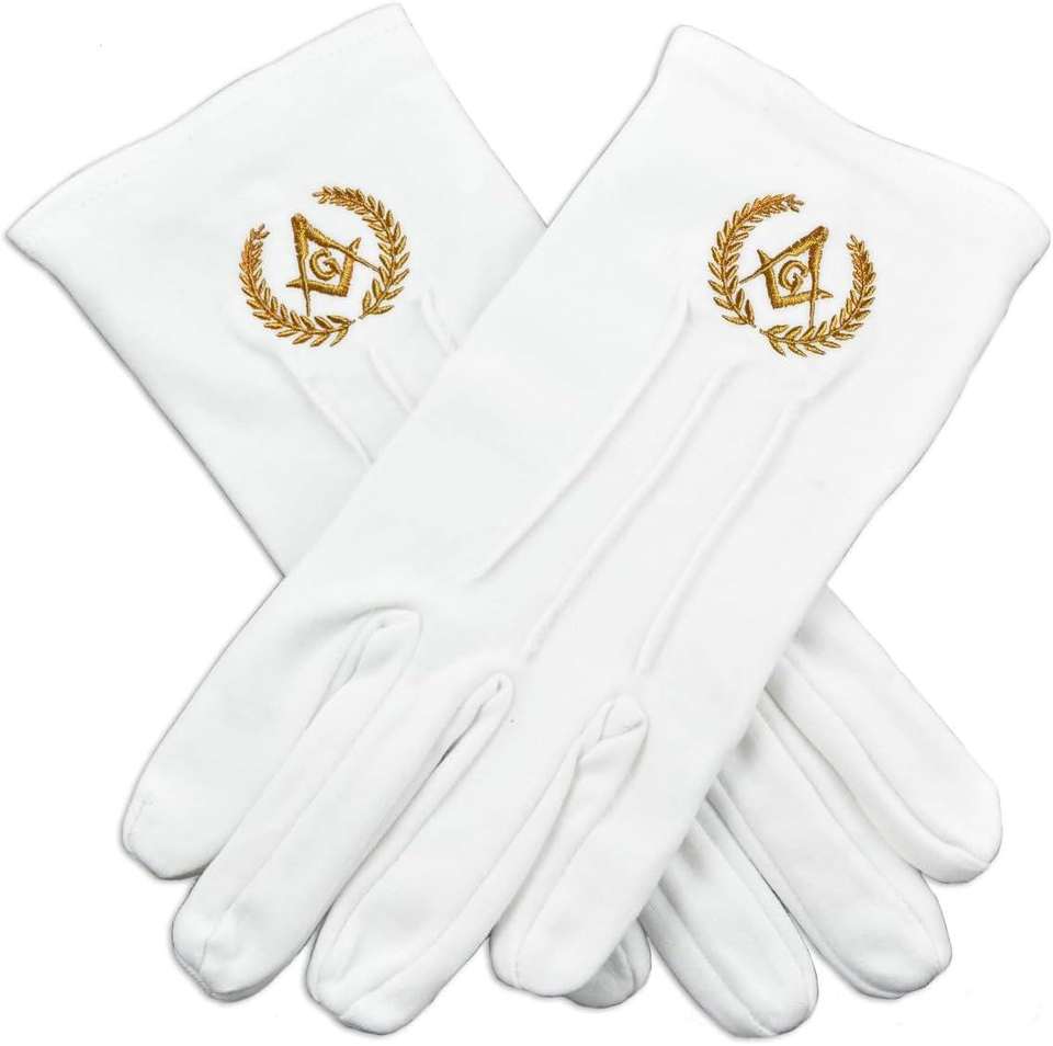 Wholesale Manufacturer Masonic Gloves Hand Embroidered White Ceremony Cotton Glove for Sale